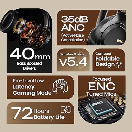 - ✅ 35dB Active Noise Cancellation (ANC) – Block distractions with Anchor’s 35dB hybrid ANC. Ideal noise cancelling headphones for travel, work-from-home, and flights.