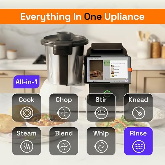 Cooking Assistant | Cooks 750+ Recipes: Pav Bhaji, Pasta, Soup, Kadhai Paneer & More | 10 Cooking Modes | AI-Powered | Built-In Weighing Scale | Phone App | WiFi | 1-Year Warranty