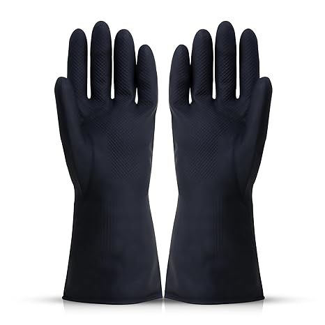 Duty Rubber Hand gloves – 1 Pair (Free Size, Black) for Dishwashing, gardening, kitchen cleaning