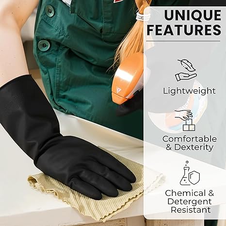 - Power through your worst cleaning job with these rubber gloves to protect your hands and keep them dry. The rubber gloves for cleaning the exterior allows you to wash pots and pans with hot water without being scalded, and the flexibility of these salt resistance gloves makes them more comfortable