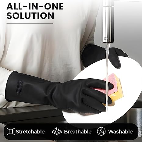 - This kitchen gloves for washing are highly stretchable but makes it fit snugly on hand, for a perfect tight fit. Flock liner to the rubber gloves reusable, combined with the flexibility of the nitrile film