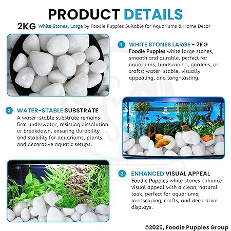 Polished White Pebbles Glossy Stones – 2Kg (2.5cm – 4cm) | for Home Decorative, Vase Fillers, Aquarium Fish Tank, Garden River Rock Unplanted Substrate
